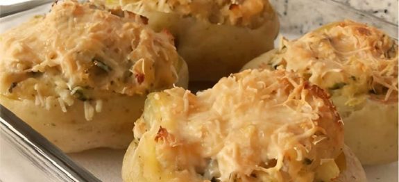 Batata Recheada com Frango se transforma completamente na etapa de montagem e gratinação.
