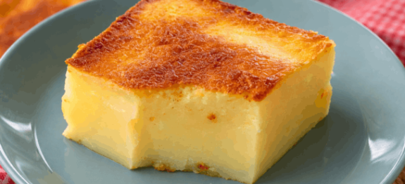 Outro ponto curioso é que essa massa líquida cria naturalmente duas camadas durante o forno: uma parte mais firme e outra cremosa.