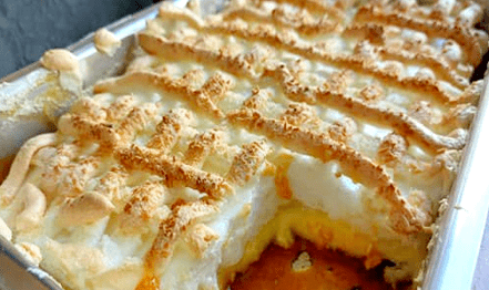 O chico balanceado é uma sobremesa tradicional muito popular no sul do Brasil, feita com camadas de caramelo, creme e cobertura de claras em neve.